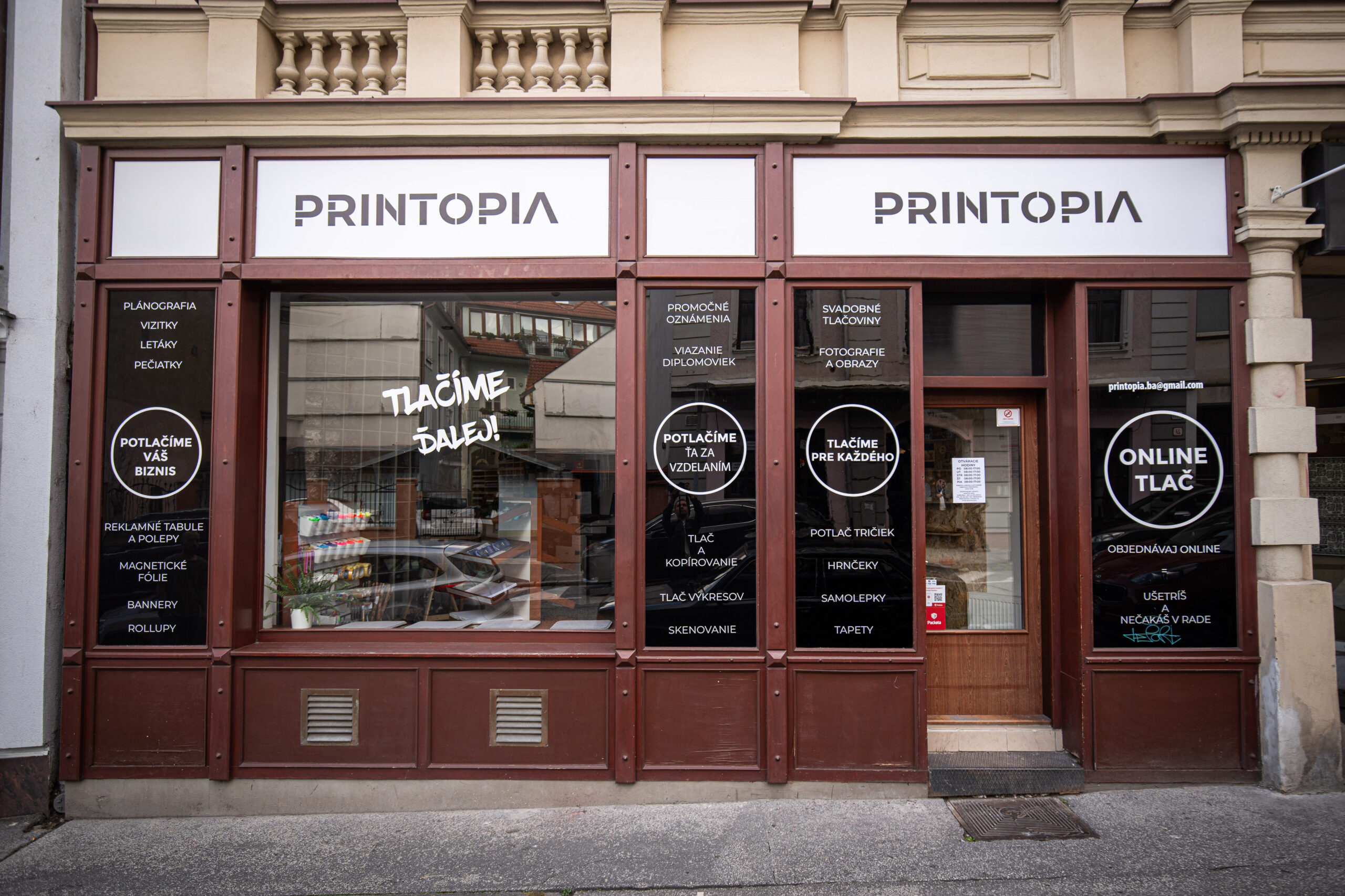 Makáme na plné obrátky. Profi príprava grafiky, tlač, potlač a dôsledná kontrola. Tešíme sa na teba u a nás v Printopii.